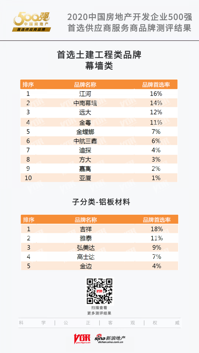 《2020中國房地產(chǎn)開發(fā)企業(yè)500強測評報告》和《2020中國房地產(chǎn)開發(fā)企業(yè)500強首選供應(yīng)商服務(wù)商品牌測評報告》同時揭曉。測評報告顯示,武漢弘美達幕墻建材有限公司榮獲2020中國房地產(chǎn)開發(fā)企業(yè)500強首選供應(yīng)商·鋁板材料類。
